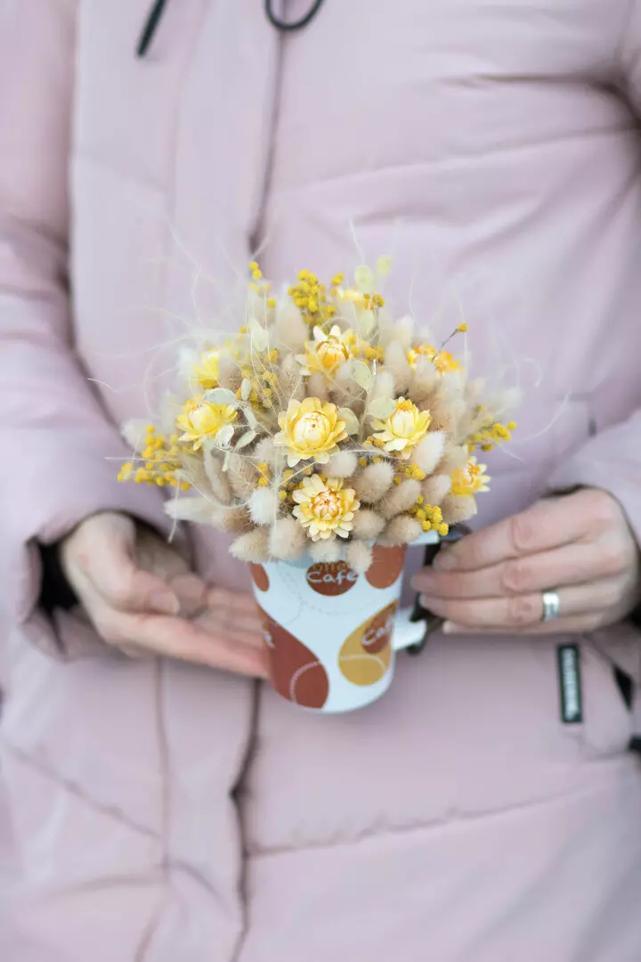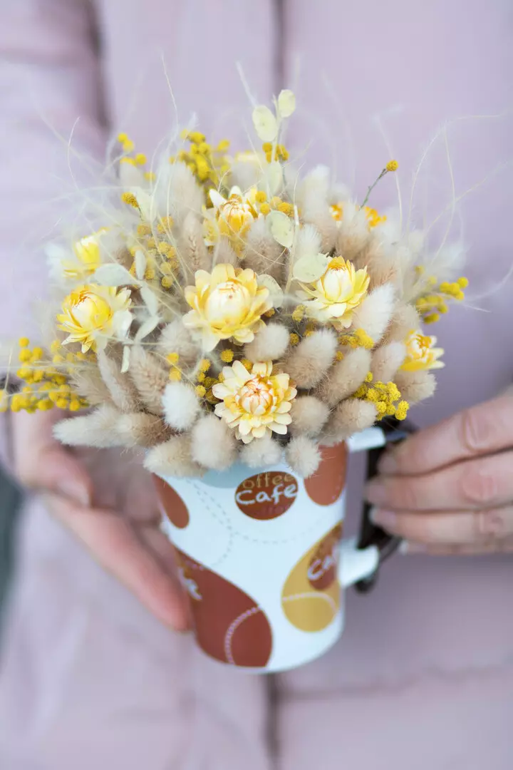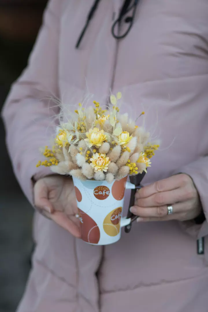 керамическая кружка с сухоцветами