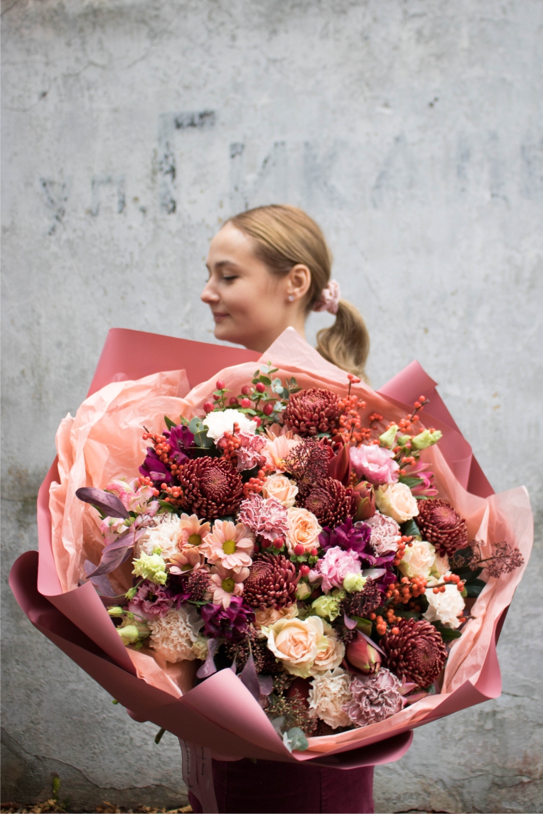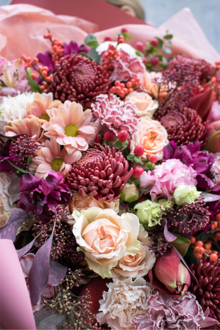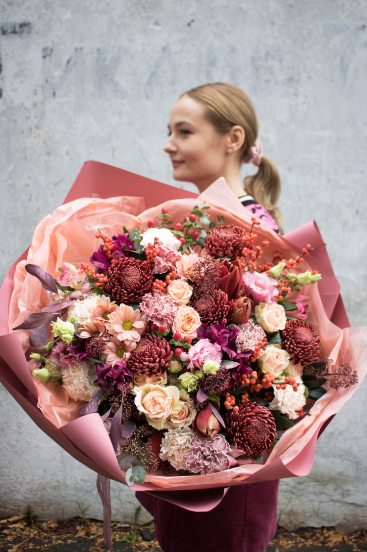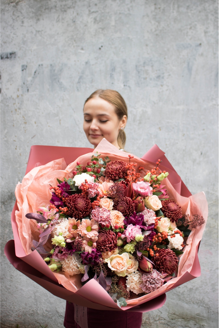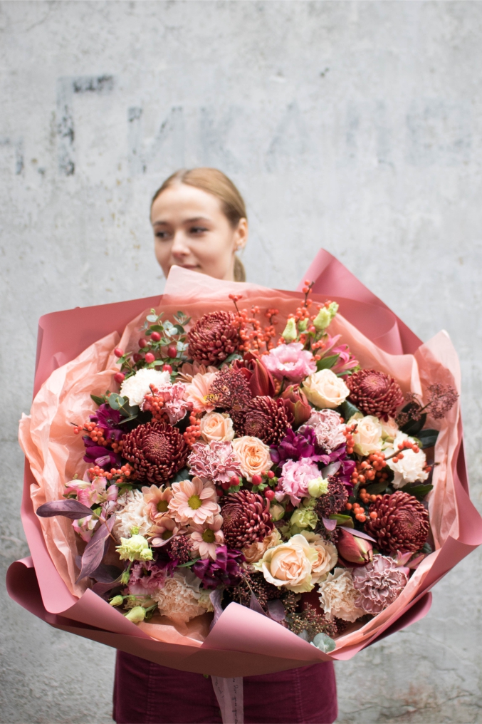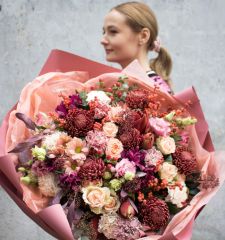 Зелень Роза кустовая Роза пионовидная Роза садовая Хризантема Экзотика