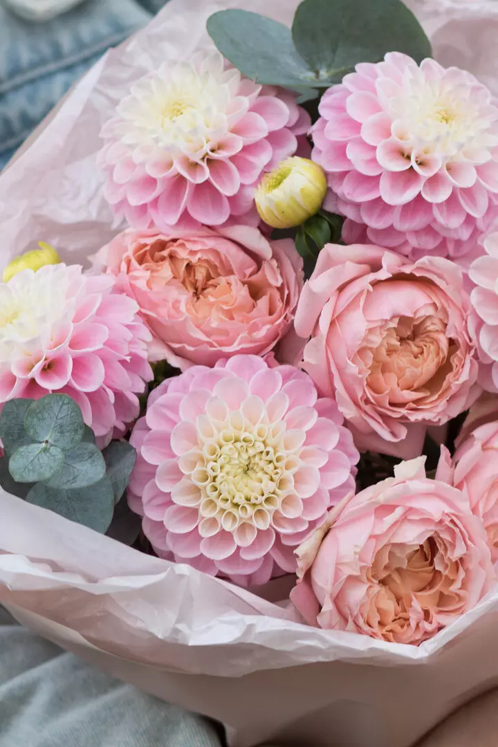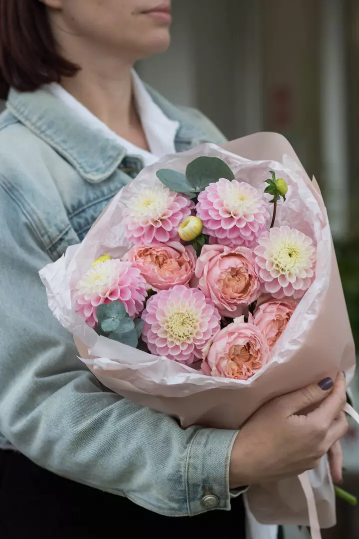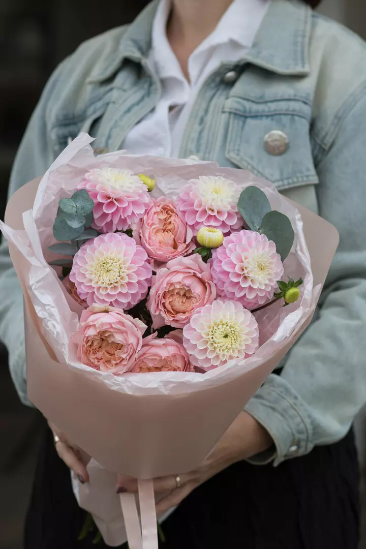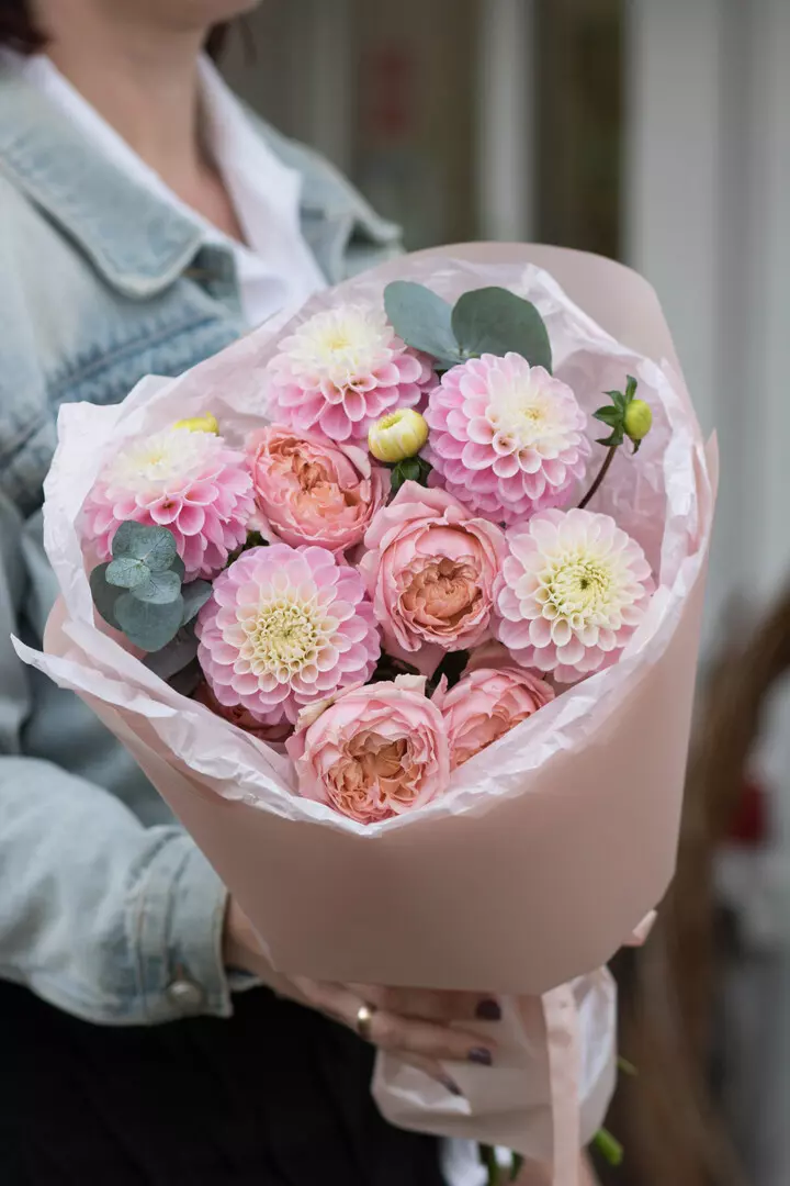 Нежный осенний букет с георгинами