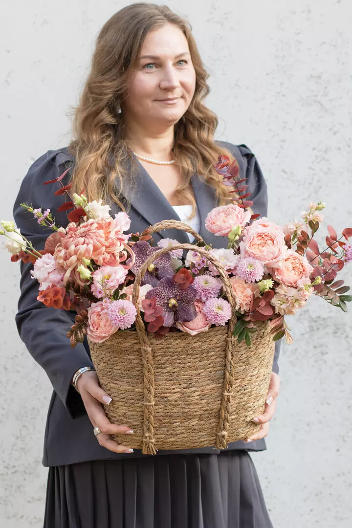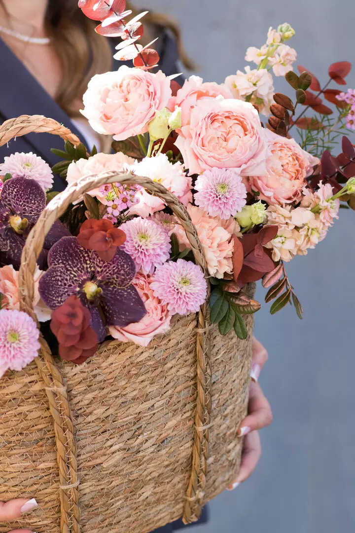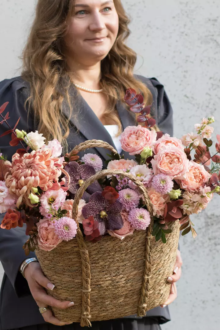 Диантус Зелень Маттиола Орхидея Пистация Роза кустовая Роза пионовидная Хамелациум Эвкалипт